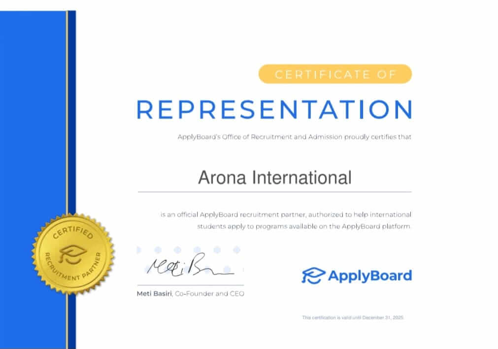 This certification authorizes us to assist international students in applying to globally recognized universities and programs available on the ApplyBoard platform.